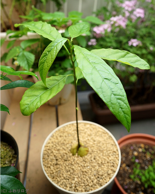 2022年4月28日、水耕栽培を始めたアボカド4号。
