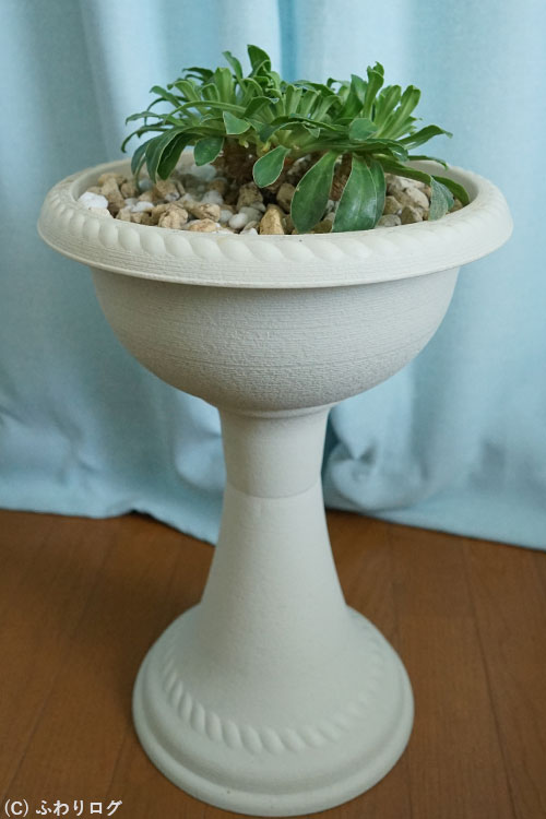 葉っぱが蒸れにくいように、土の表面に鉢底石を敷く ⇒ たっぷり水やりしたら完成。