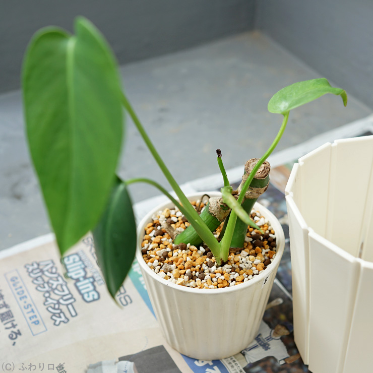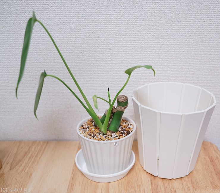 【モンステラ】2度目の水挿し(4) No.8を2鉢に植え替えた様子とわかったこと1つ [2025年7月]