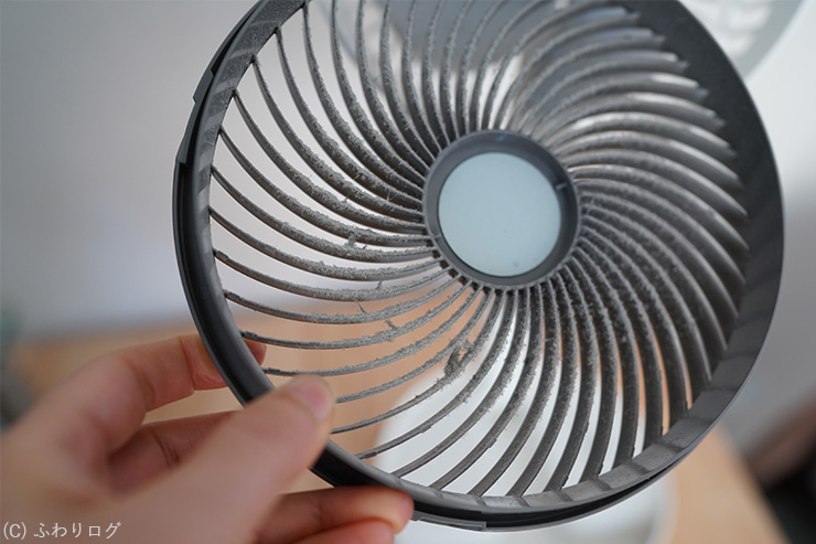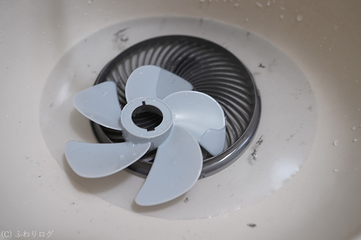羽根はスポンジでサッと汚れが取れ、前ガードはスポンジと歯ブラシでサッと汚れが取れました。