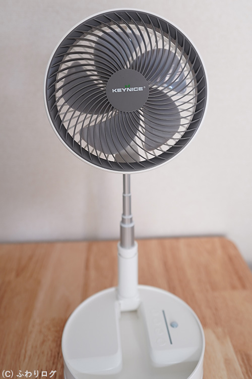 2024年7月から愛用中の「KEYNICE リビング & ポータブル折りたたみ充電式扇風機」。