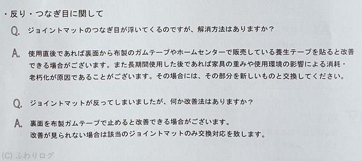 ※ 樹脂製のため伸縮性があり一定期間使用すると、きしみ音や、ジョイント部分が盛り上がる可能性があるそうです。