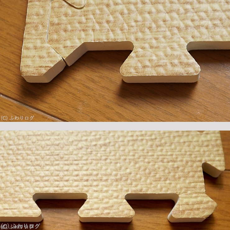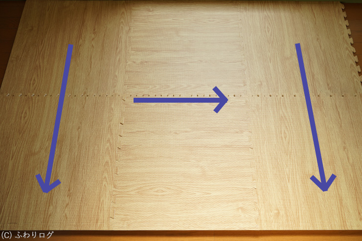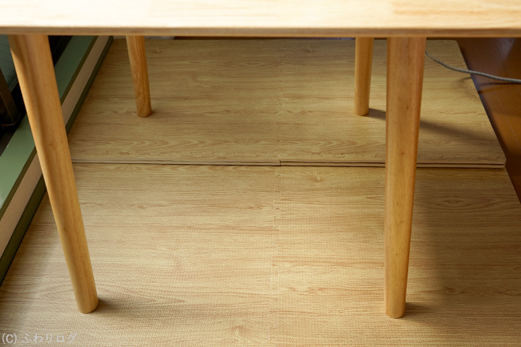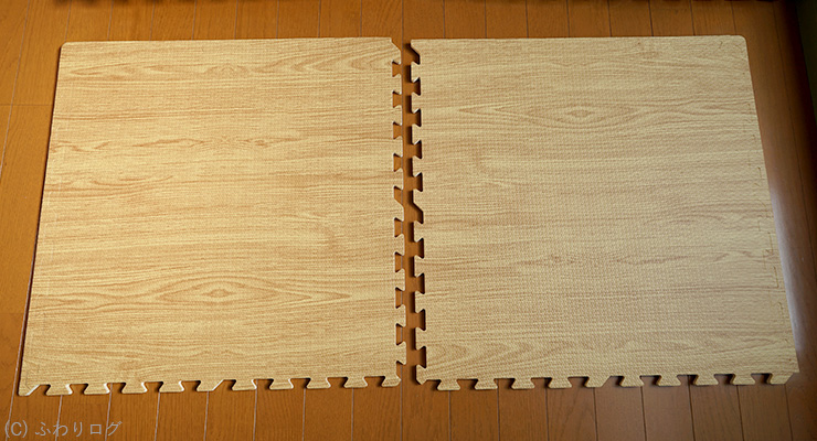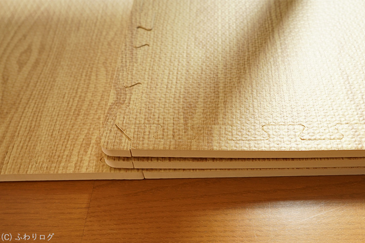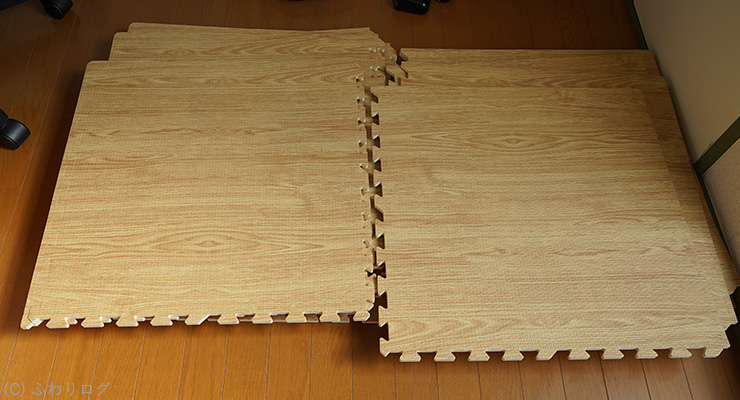 木目調のデザインに合わせて縦横の向きを確認し、パズルピースを組み立てる時のようにパチパチとはめていくだけです♪
