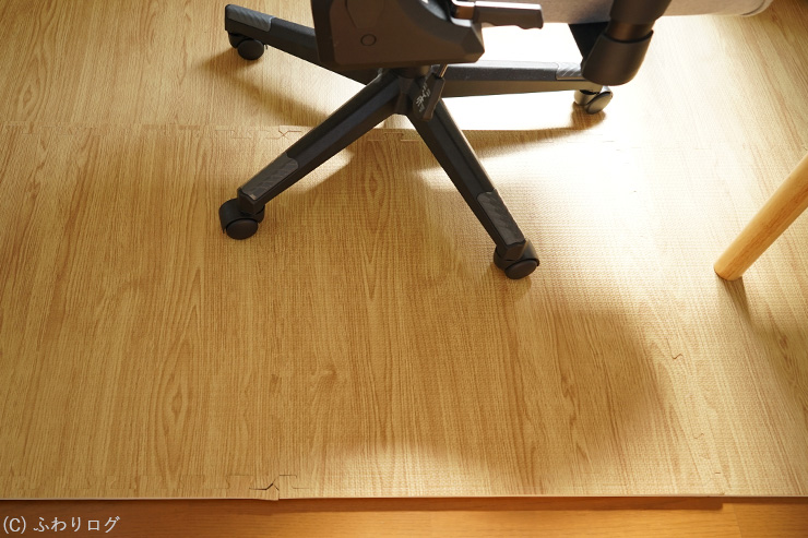 ジョイントマットは小さなお子さんがいる家庭で使うモノだと思い込んでいましたが、オトナにも使える木目調デザインということもあり、良い出会いとなりました☆