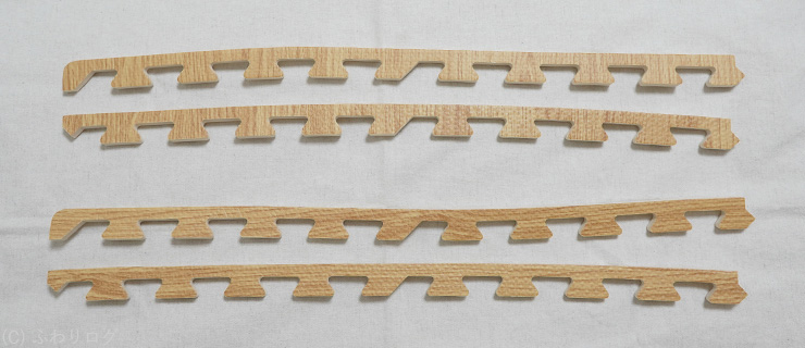 サイドの凸凹をカバーして美しく仕上げてくれるサイドパーツは、ジョイントマットにはめられた状態で届きます。