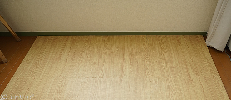 私の部屋ではジョイントマットを幅いっぱいに敷こうとすると少し幅が足りないため、最初は左に詰めて敷きました(右の余白イメージ:7月の写真)。