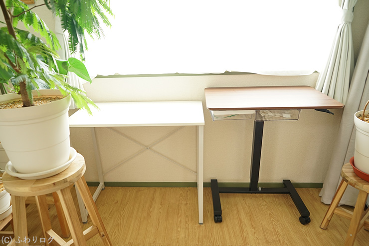 また、私はたくさんモノがあったりデザインがいろいろ混在していると、頭も気持ちもガヤガヤしてきてプチストレスを感じるタイプなので、モノは少ない方が心地よいのですが、狭い6畳ワンルームでデスクとベッドの大物は外せないためこれがなかなか難しいんですね(^^;