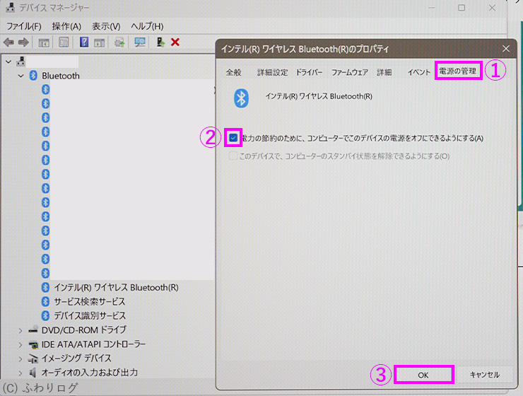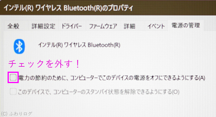 Bluetooth通信と無線LANの問題?PCの電源コントロール設定?