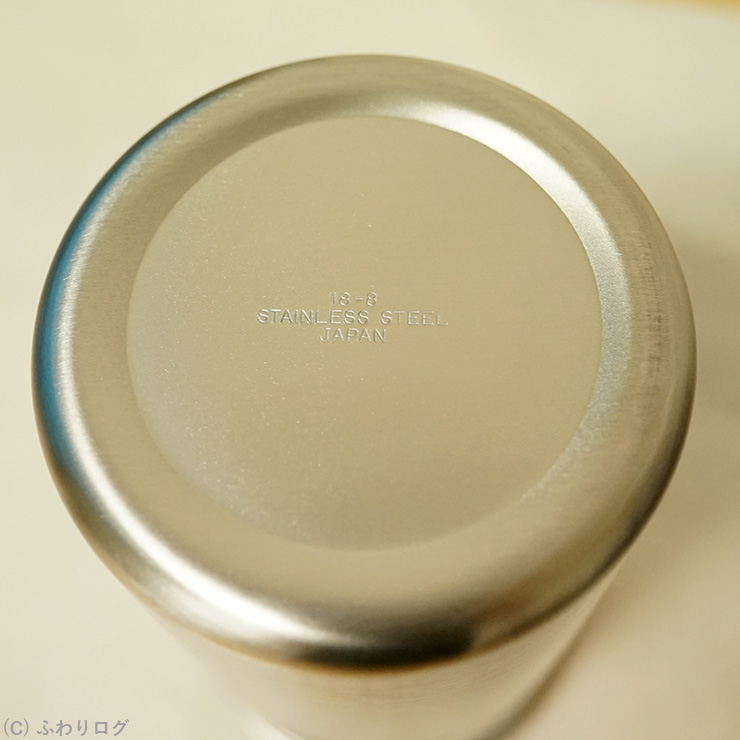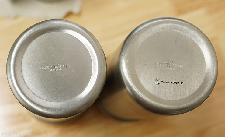 どちらも「18-8 STAINLESS STEEL JAPAN」で、thermo mugは「Made in TSUMAME」の刻印もあり。