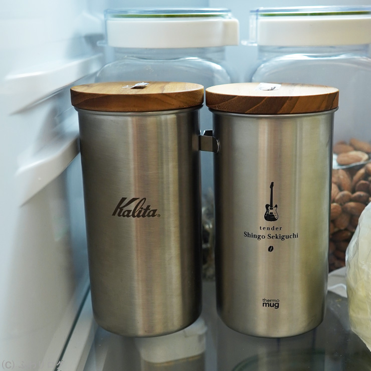 1種類は「thermo mug」に、もう1種類は「TAKEYA フレッシュロック」で保存していましたが、並べるとなぜだかプラスチック製の容器の方はコーヒー豆まで安っぽく見えてしまうんですね(^^;