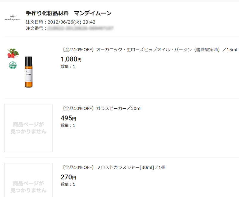 ショップは、2012年6月、初めて手作りコスメにトライした際に利用したショップ「monday moon」です。