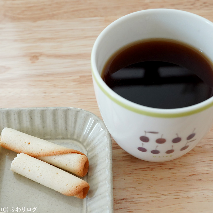 ふだんはコーヒーのみで味わいますが、いただきもののシャトレーゼのラングドシャと一緒に飲んだらこれがまた美味しくてo(^^)o