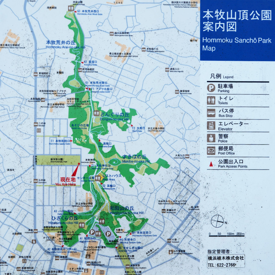 本牧山頂公園と本牧神社の位置関係はこちら。