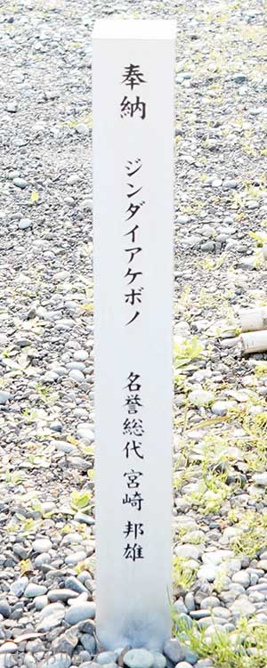 奉納 ジンダイアケボノ 名誉総代 宮崎邦雄” と書かれた標柱が立っていました。