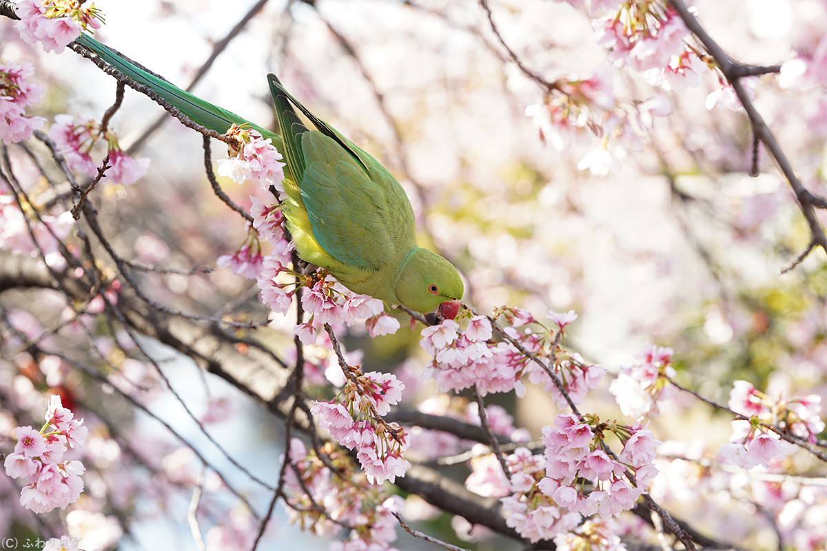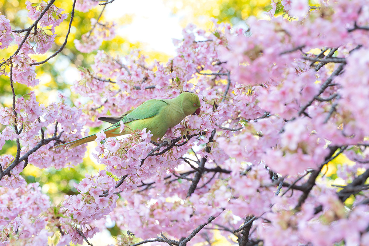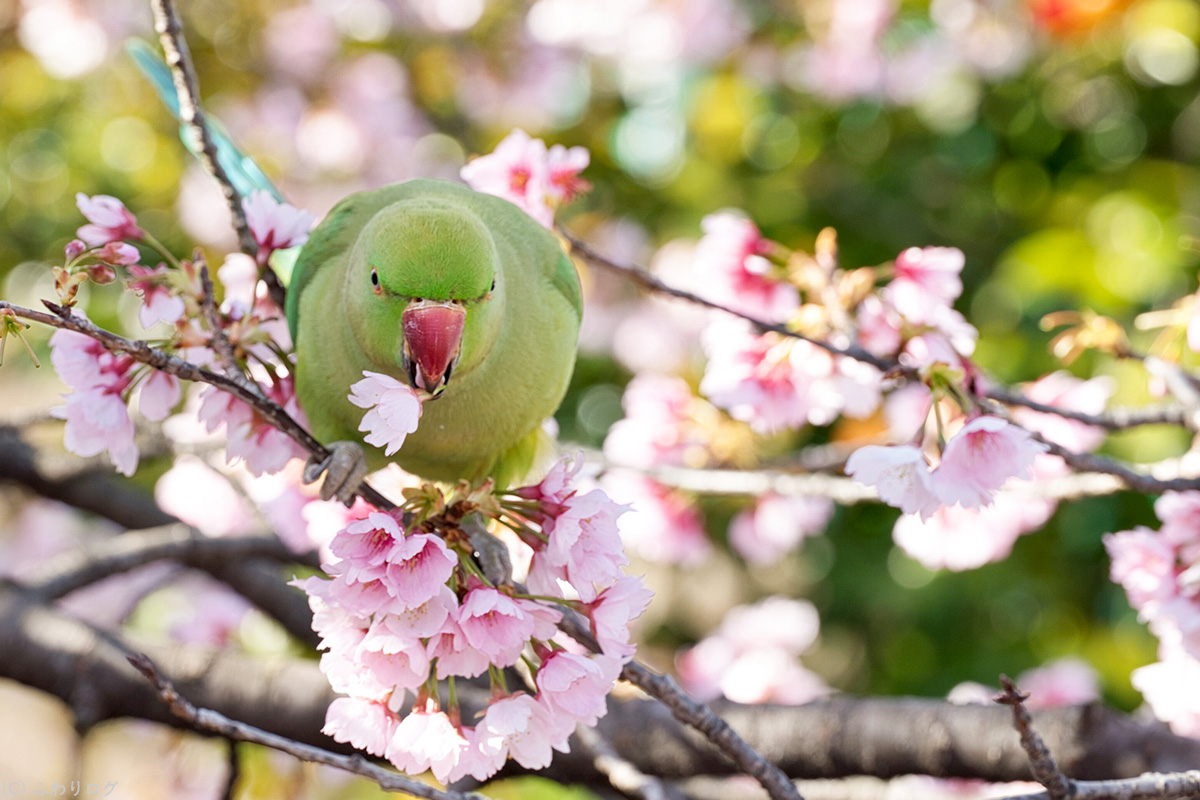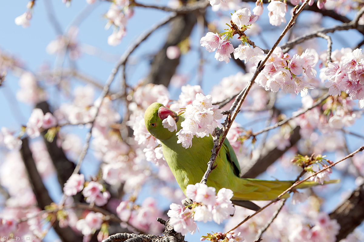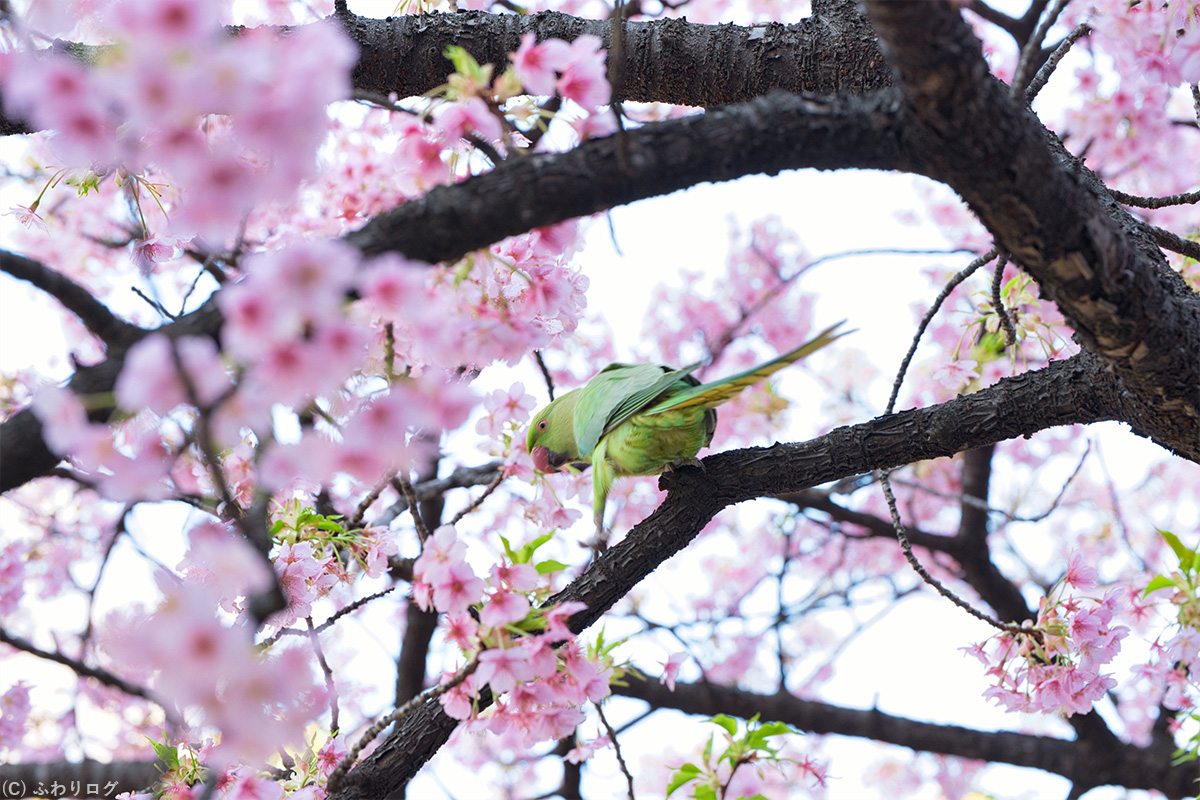 ワカケホンセイインコは「2.大寒桜とワカケホンセイインコ」の項目でたっぷりご紹介します♪