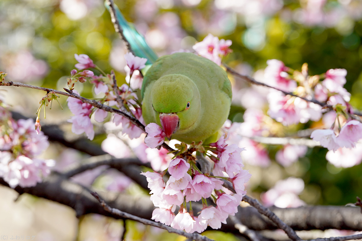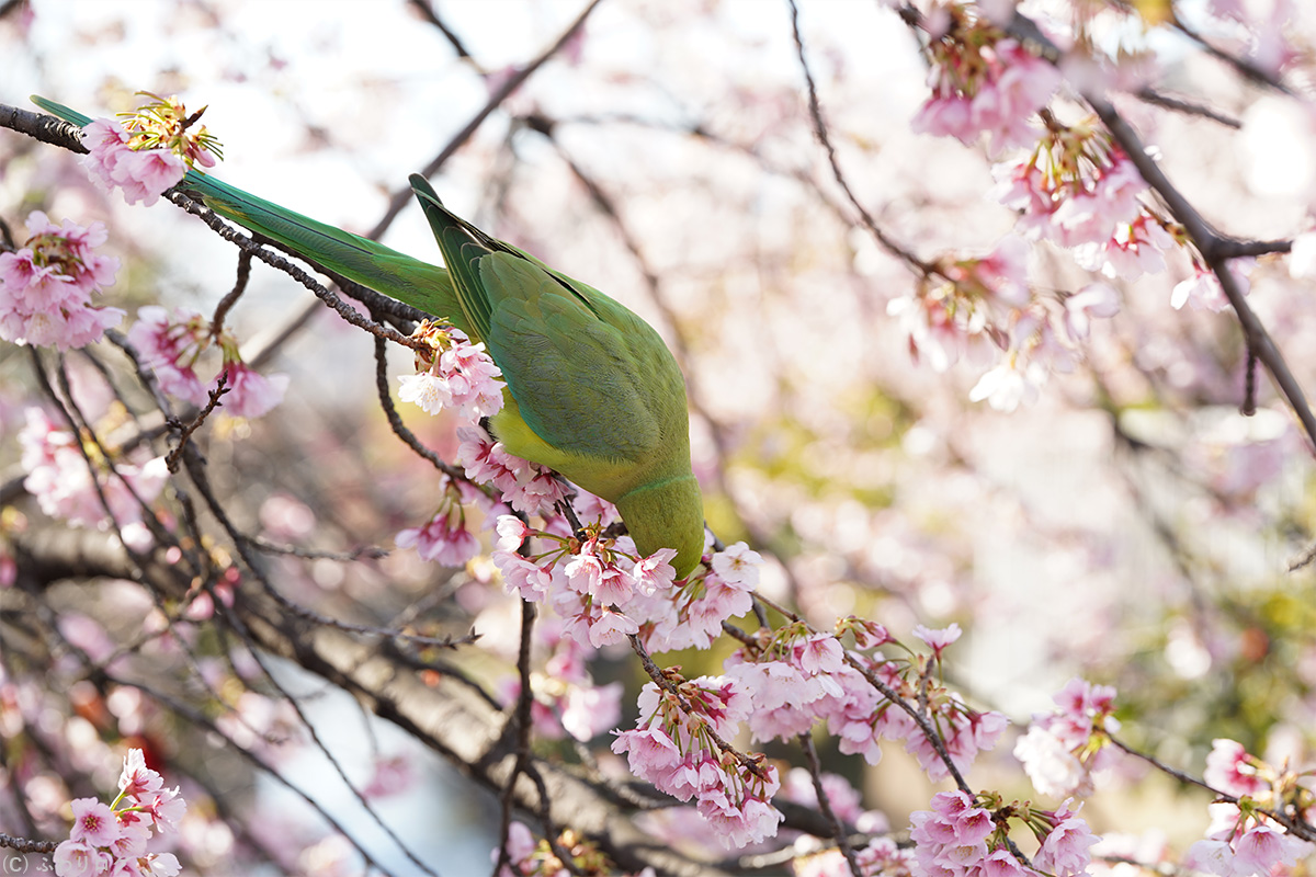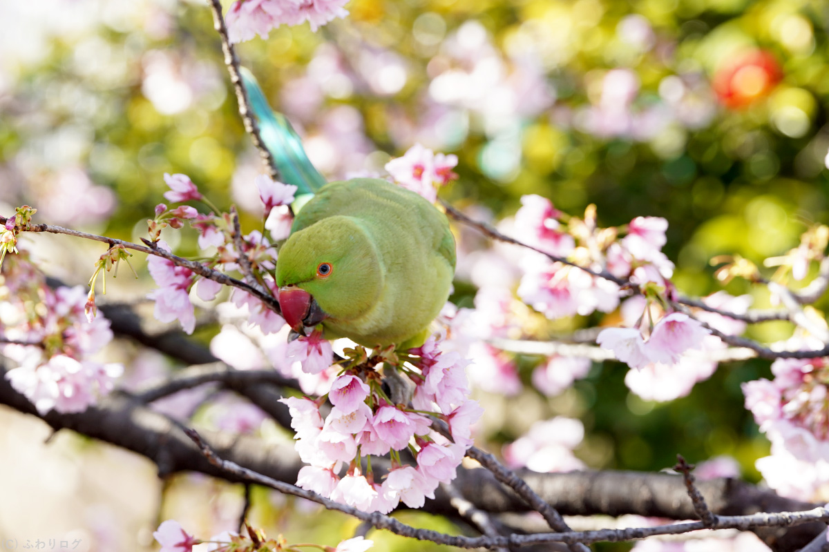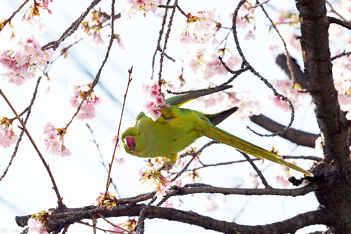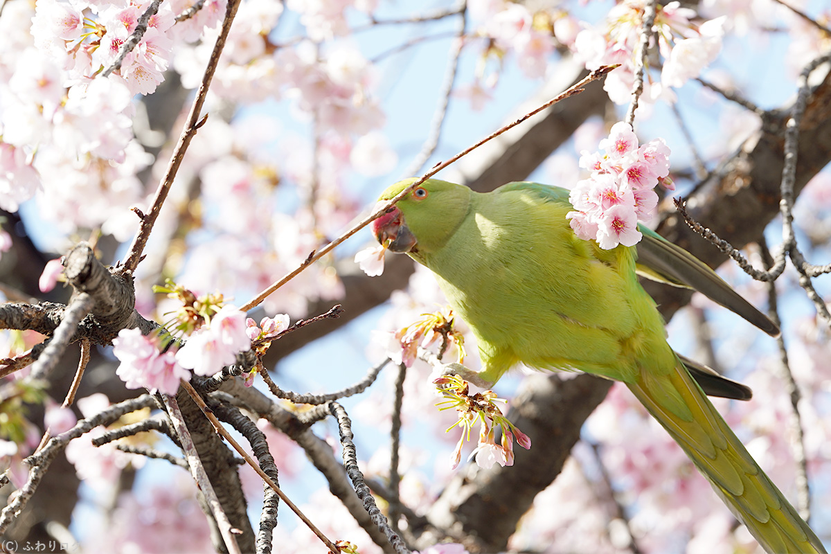 ワカケホンセイインコは「2.大寒桜とワカケホンセイインコ」の項目でたっぷりご紹介します♪