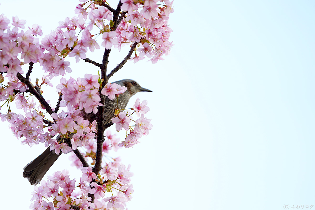 河津桜を撮っていたら、頭に何か落ちてきました(^^;