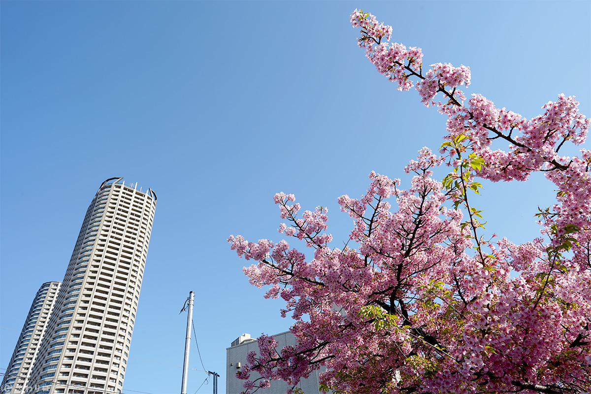 ビルと河津桜を見ると、つい撮ってしまいます(^^)