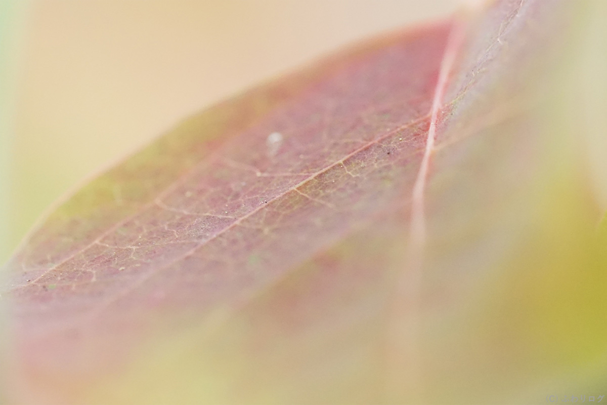 この葉っぱを見つけたとき、葉っぱ1枚の中にしっとりした七色のグラデーションが淡く優しく広がっている姿に一目惚れ♡