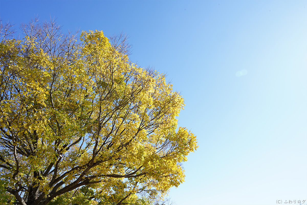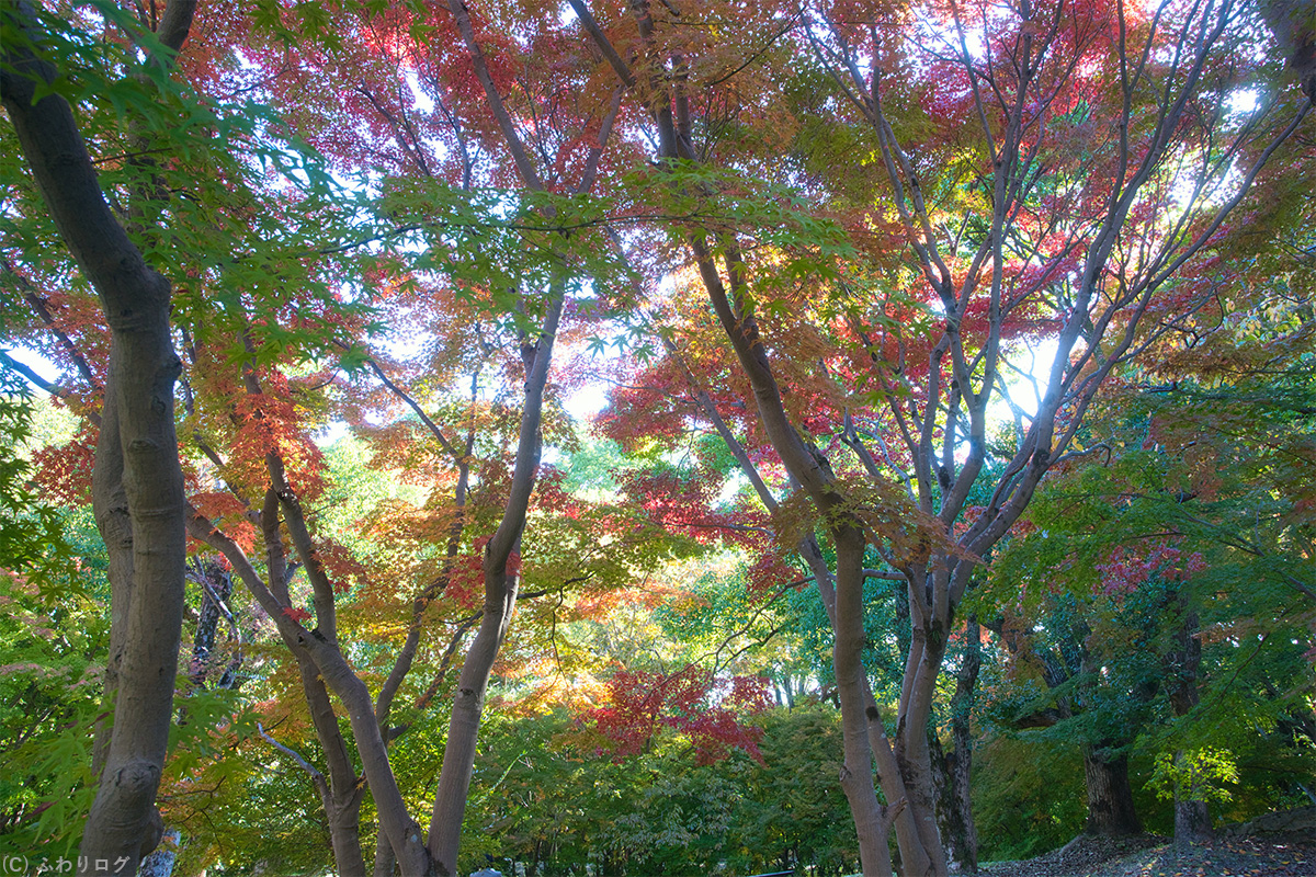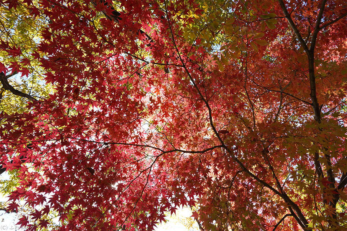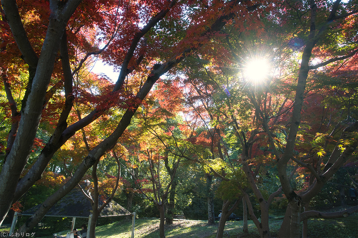 グラデーションの紅葉に太陽がチラ見えしたので、次は木漏れ日も入れて紅葉を撮ってみました♪