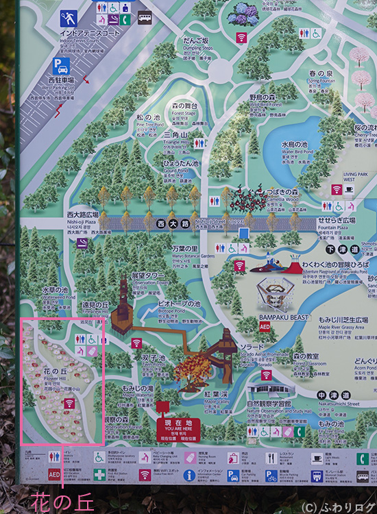 私は滞在時間約2時間で、園内マップの左側をてくてくと歩きました。
