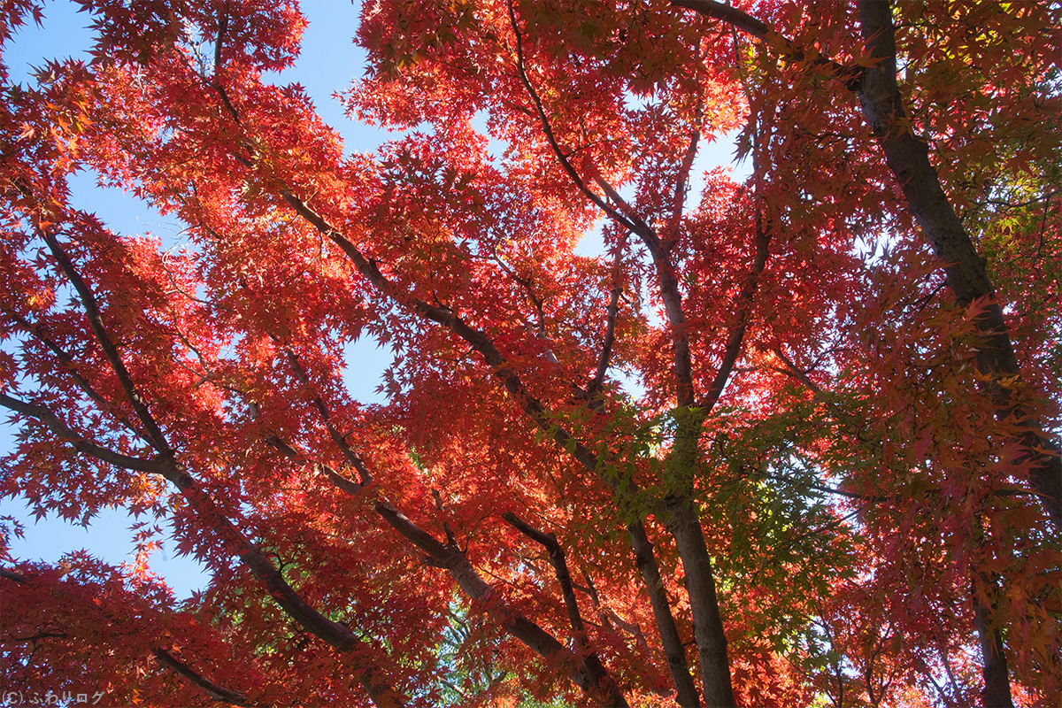 (4) 見上げた真っ赤な紅葉